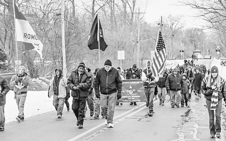 front of the march on Wick Road from Romulus Middle School to Romulus High
